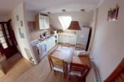 Mieszkanie o oryginalnym rozkładzie, przestronne, ciepłe. Na parterze kuchnia połączana z salonem oraz obszerna łazienka z wanną i prysznicem. Na piętrze dwa pokoje i garderoba. Wnętrze ogrzewane 2-funkcyjnym piecem gazowym. Do mieszkania została przydzielona piwnica; istnieje możliwość korzystania ze strychu. Miesięczne koszty utrzymania, wraz z wliczonym funduszem remontowym, około 250 zł. Podana powierzchnia jest liczona po podłodze. Cena do negocjacji.